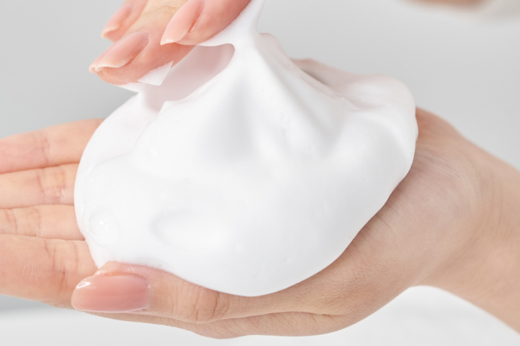 Gently massage the facial cleanser onto damp skin, ensuring even coverage across your face to prepare for cleansing.