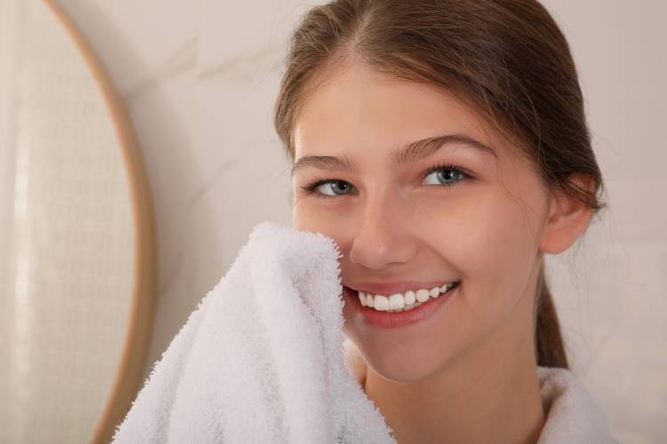 Massage in circular motions to remove dirt, makeup, and oils, ensuring a thorough cleanse without irritating the skin.
